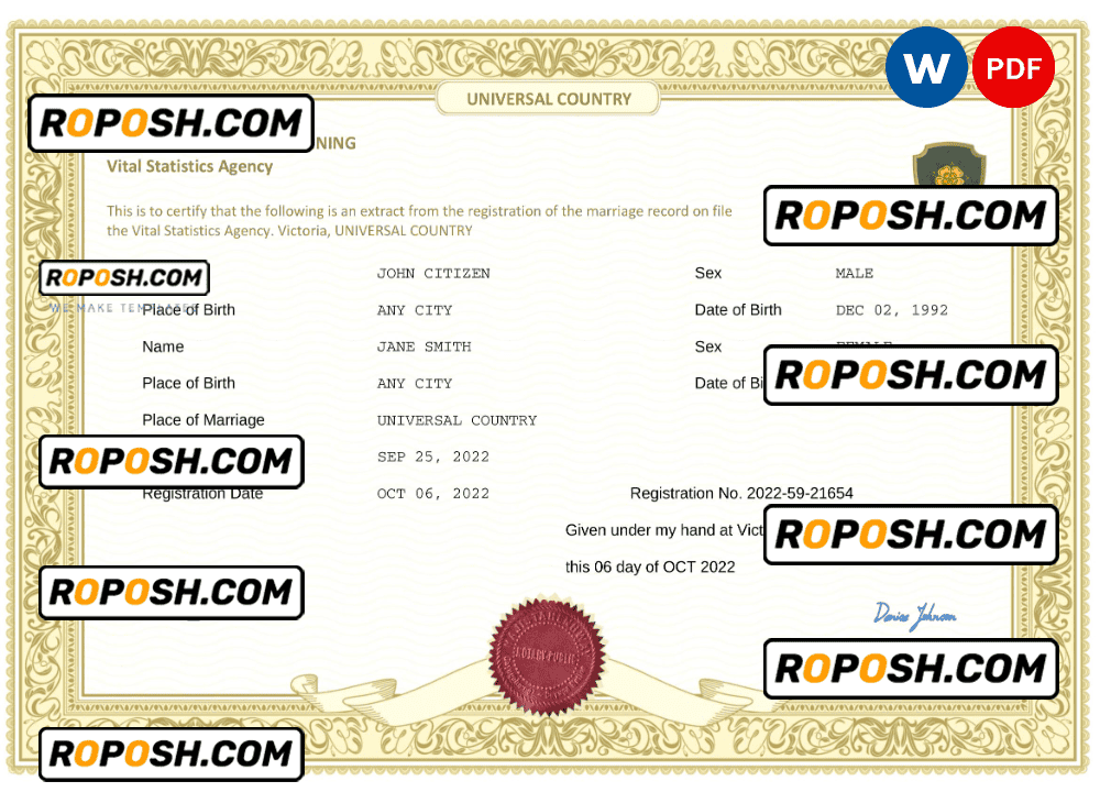 Choose roposh and appreciate the pleasure of a beautiful, authentic-looking Marriage Certificate you can print at home or at your local print shop for a polished presentation.