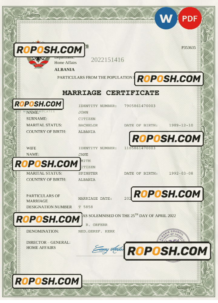 – Join our growing list of satisfied customers today by getting your hands on our blank Albania marriage paper certificates.