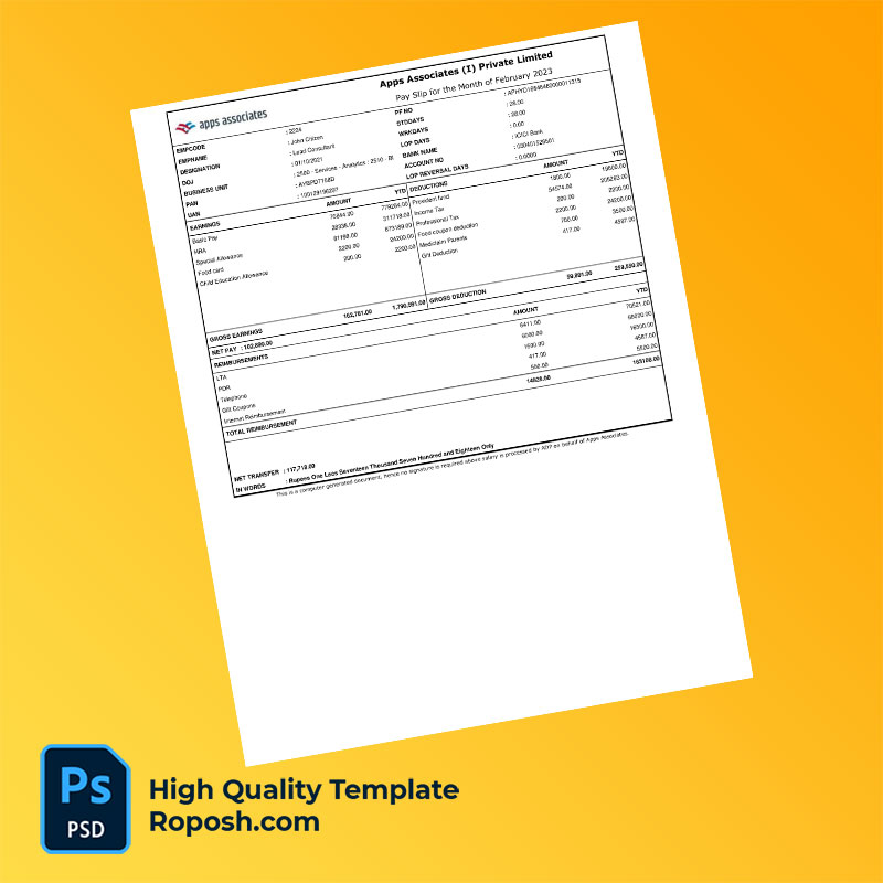 Be the first to review “Apps Associates Private Limited payslip word and pdf template”