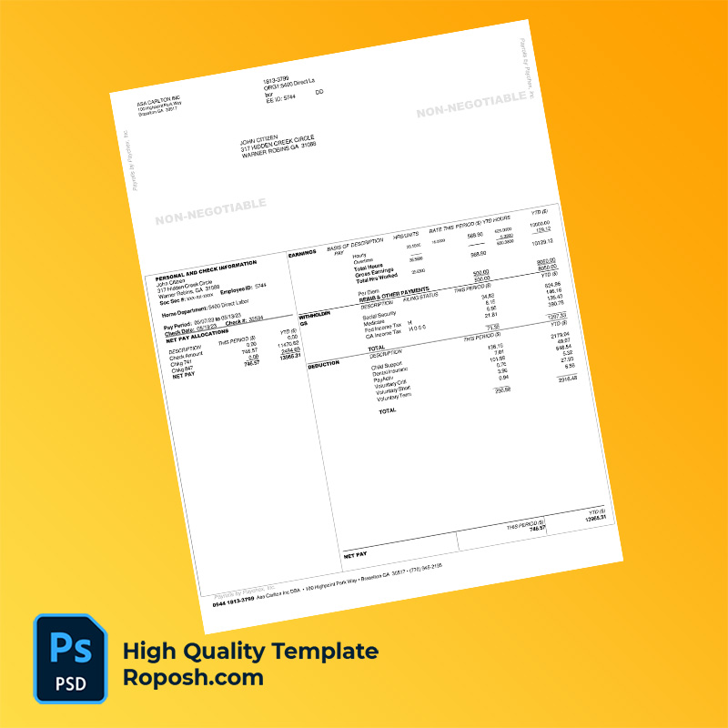 Be the first to review “ASA Carlton Inc pay stub word and pdf template”