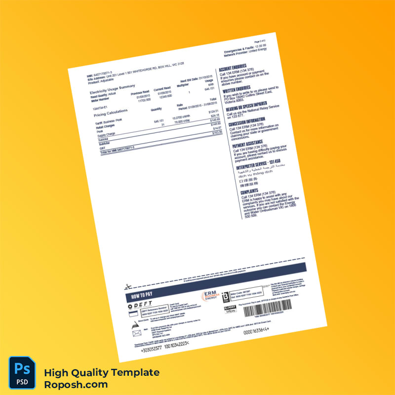 In the fast-paced world of professional services, losing an essential document like your utility bill can disrupt your routine and create unnecessary stress. The Australia ERM Power Retail Pty Ltd Editable Electricity Bill Template is your quick and effective solution when you need reliable proof of address.