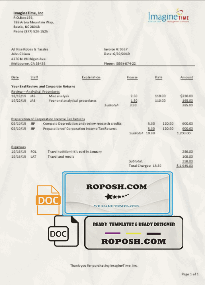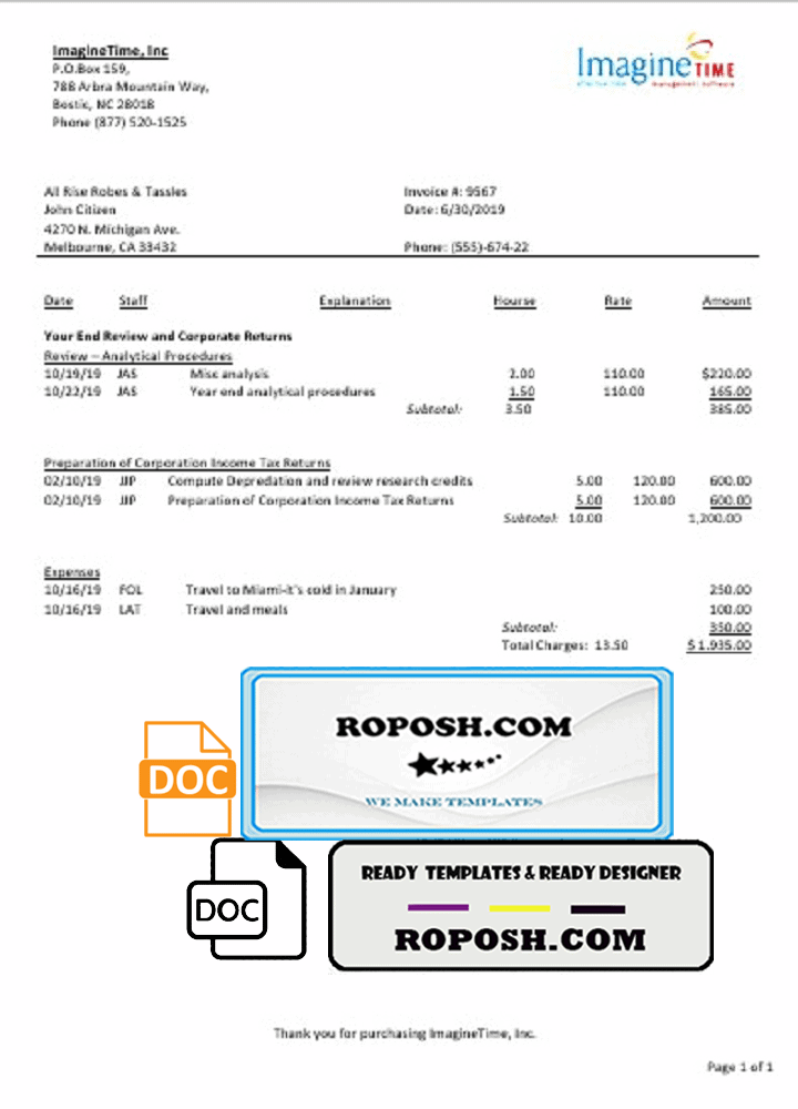 Australia Imagine Time Utility Bill Template – Editable Word Format