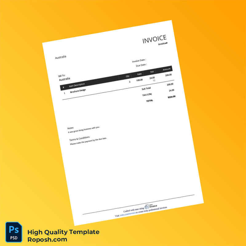 Our Australia Invoice Example Template transforms invoice creation from a tedious task to a streamlined process. Designed for easy editing, this invoice template word version ensures you apply brand-specific details quickly while maintaining legal compliance. The editable invoice template pdf format offers a secure, professional document easy to share and archive.