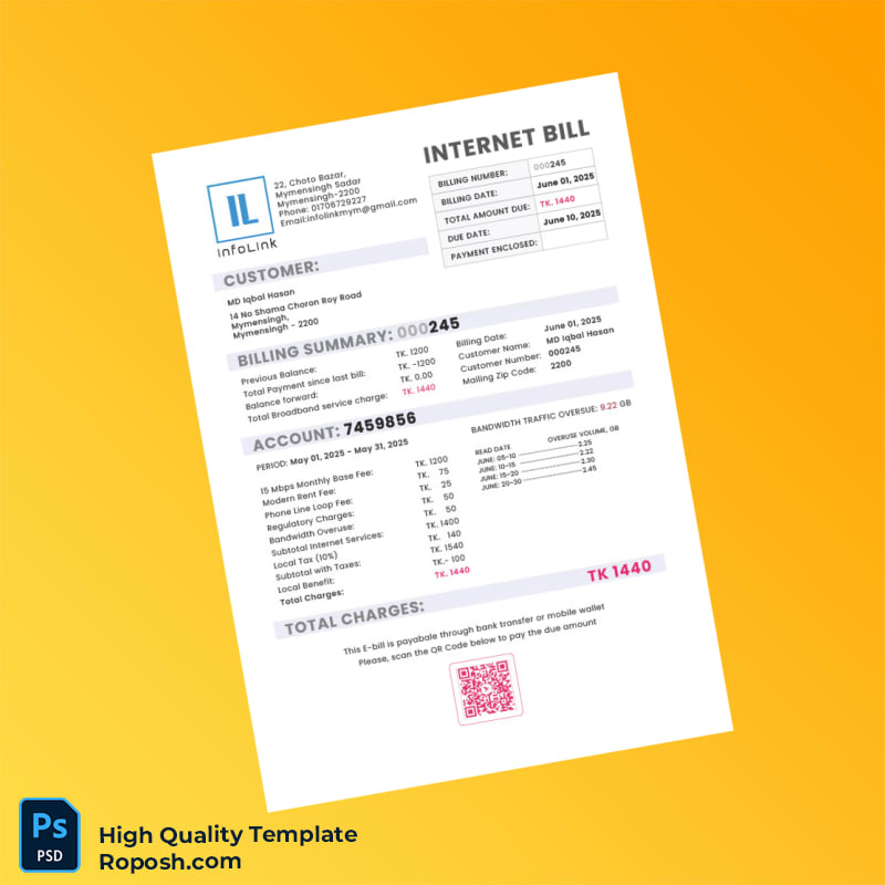 Bangladesh InfoLink Editable Utility Bill Template