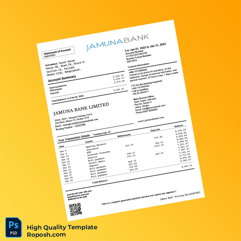 Our Bangladesh Jamuna Bank Statement Template is equipped with a multitude of features designed to make your life easier: