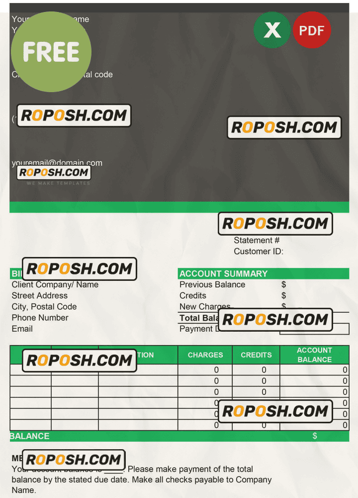 Grab now fully editable bank account statement sample Excel Template from our website Roposh and put your own info to create Realistic Bank Statement template Excel and ready your own novelty documents. It’ll be so beneficial if your Bank Statement is expired, stolen or not available.We also have editable credit card, ID Card psd template, Bank Statement psd template, drivers license psd template & printable editable blank utility bill template.