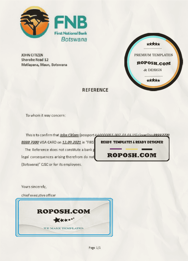 Botswana First National Bank (FNB) account closure reference letter template in Word and PDF format