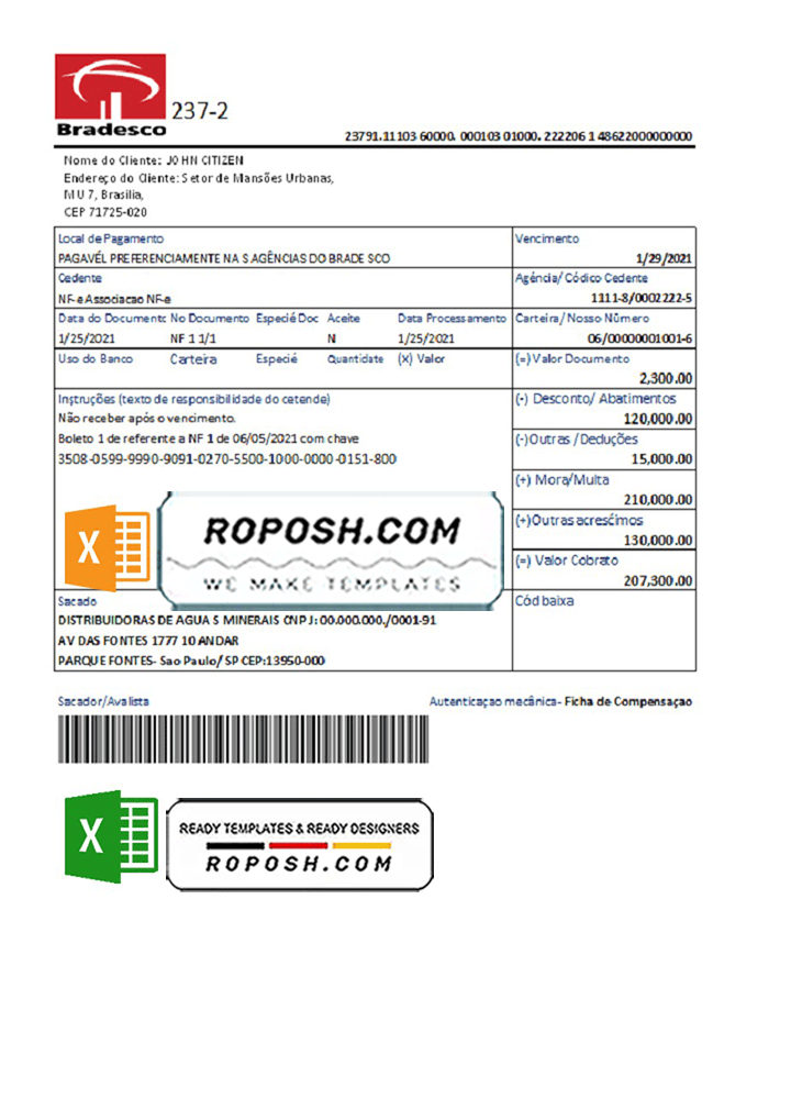 Get your fully editable Brazil Bradesco Bank Proof of Address Statement Excel Template from Roposh now. Customize it with your own information to create a realistic bank statement. This is especially useful if your bank statement is expired, stolen, or unavailable. We also offer editable credit card templates, ID card templates, bank statement PSD templates, driver’s license PSD templates, and printable editable blank utility bill templates.