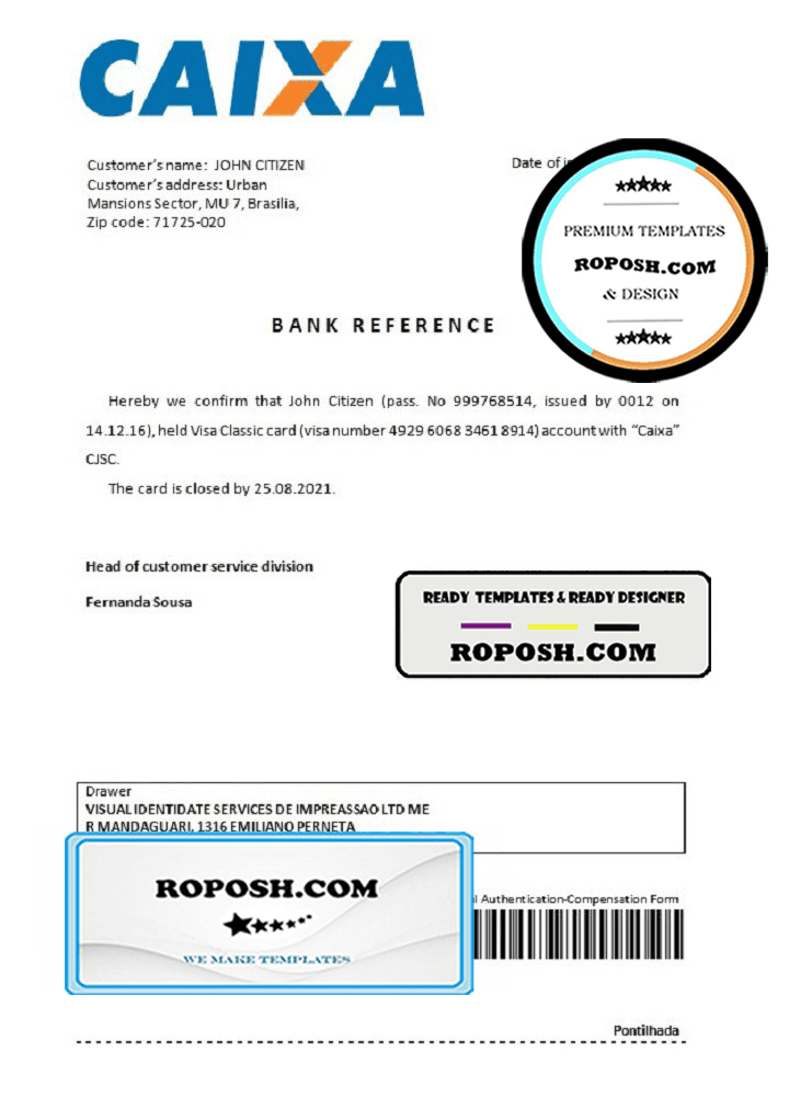 Brazil Caixa bank account closure reference letter template in Word and PDF format