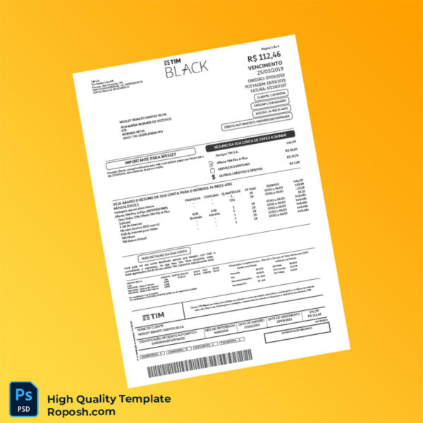 Brazil TIM Invoice Template: Streamline Your Billing Process with Editable Word & PDF Formats