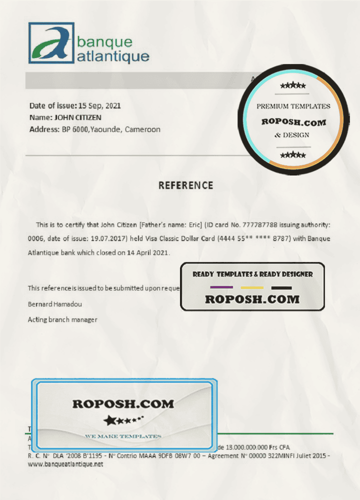 Cameroon The Atlantic bank account closure reference letter template in Word and PDF format
