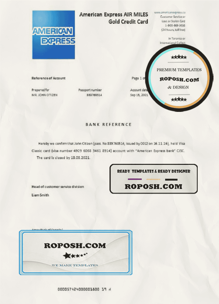 Canada American Express Air Miles bank account closure reference letter template in Word and PDF format