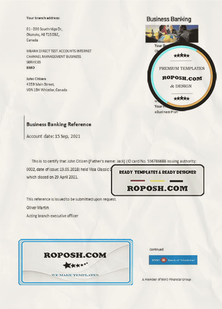 Canada BMO Bank of Montreal bank account closure reference letter template in Word and PDF format