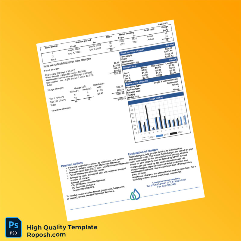 Canada City of Ottawa Editable Water Bill Template in Word and PDF Formats