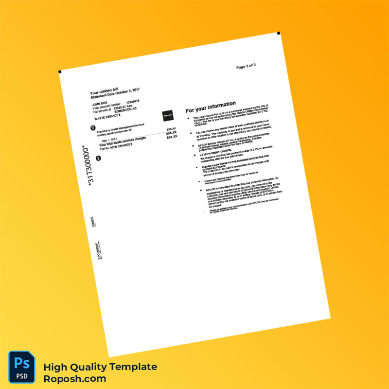 Canada EPCOR Editable Utility Bill Template in Word and PDF formats 3 page