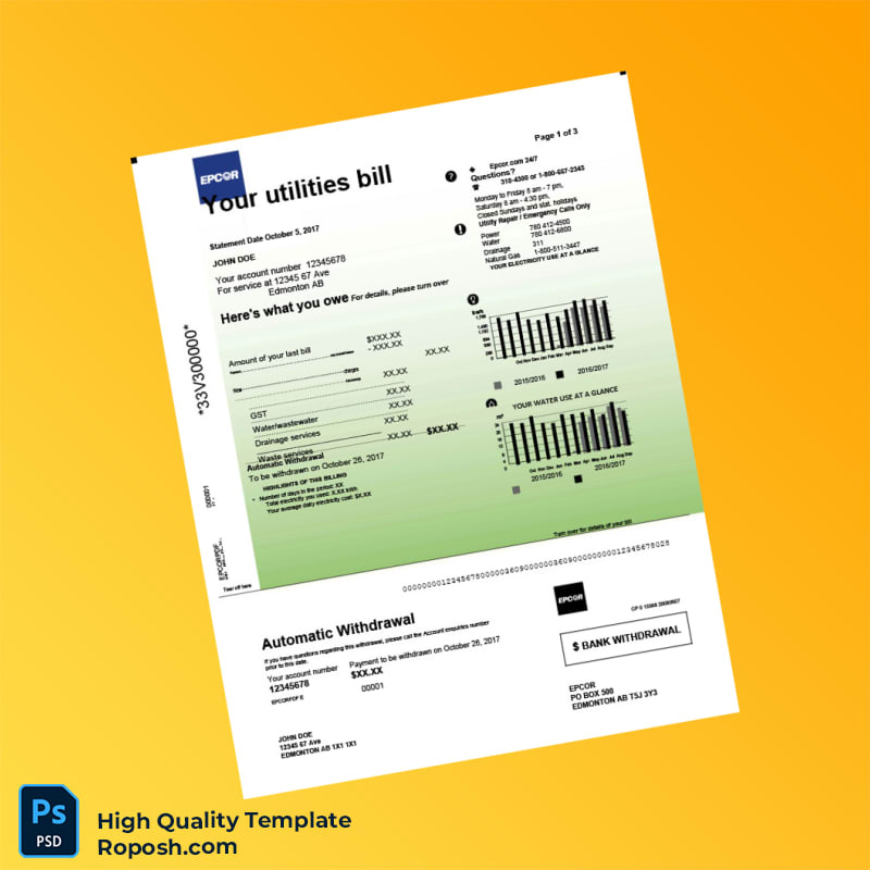Canada EPCOR Editable Utility Bill Template in Word and PDF Formats