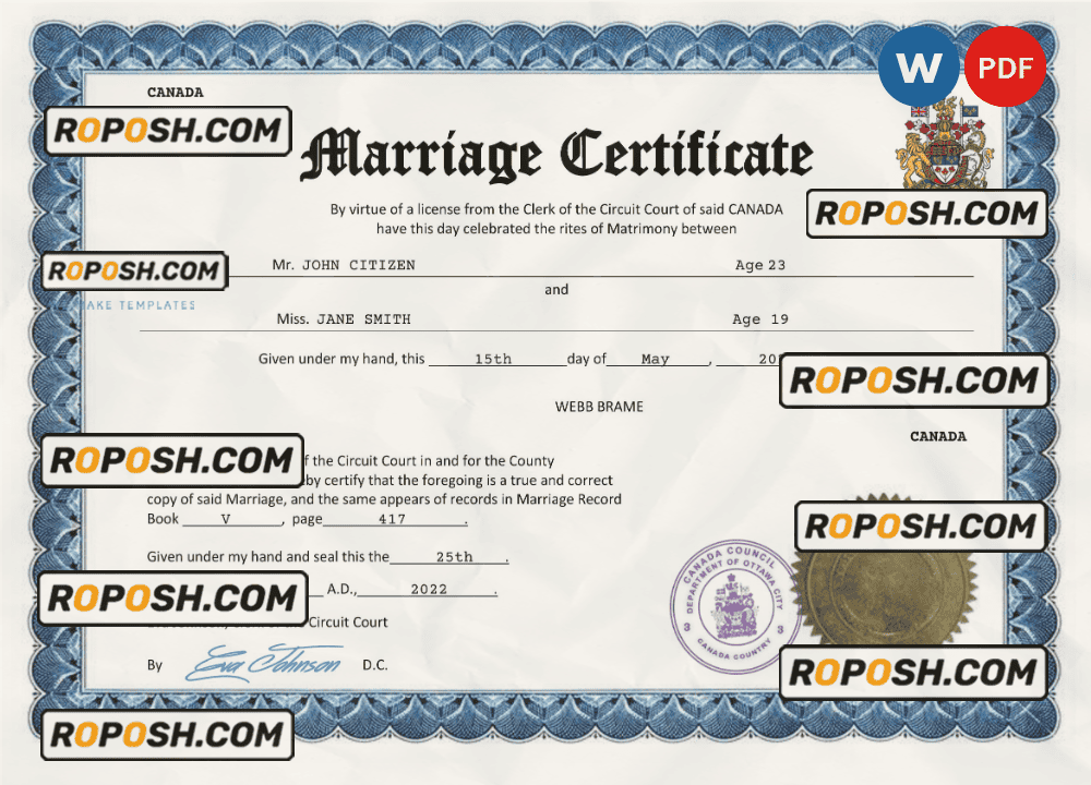 – Join our growing list of satisfied customers today by getting your hands on our blank Canada marriage paper certificates.
