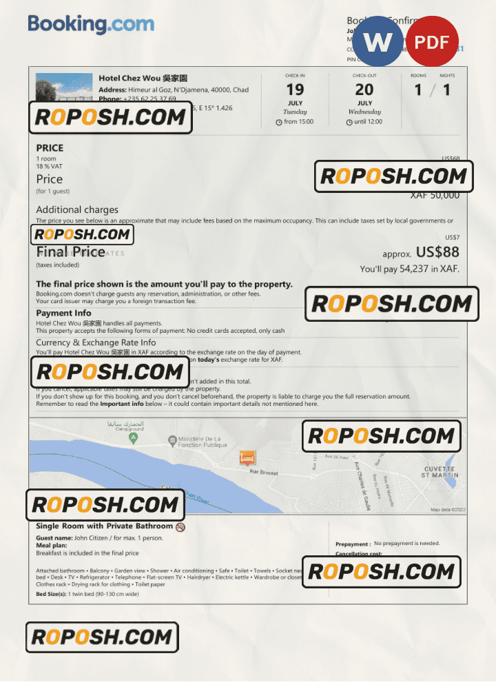 With its user-friendly design and flexible editing capabilities, this editable Chad hotel booking confirmation hotel, room, house, and Airbnb reservation proof is the perfect choice for anyone looking to create a professional-quality editable hotel accommodation reception. So why wait?