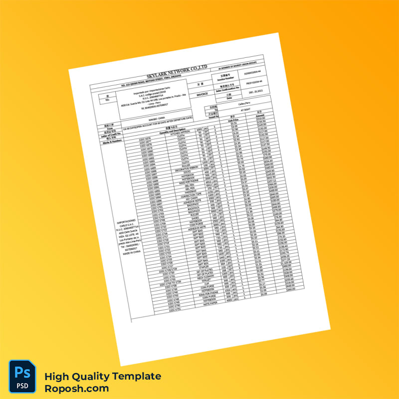 Be the first to review “China Skylark Network Co Ltd Invoice Template in Word and PDF formats 5 page”