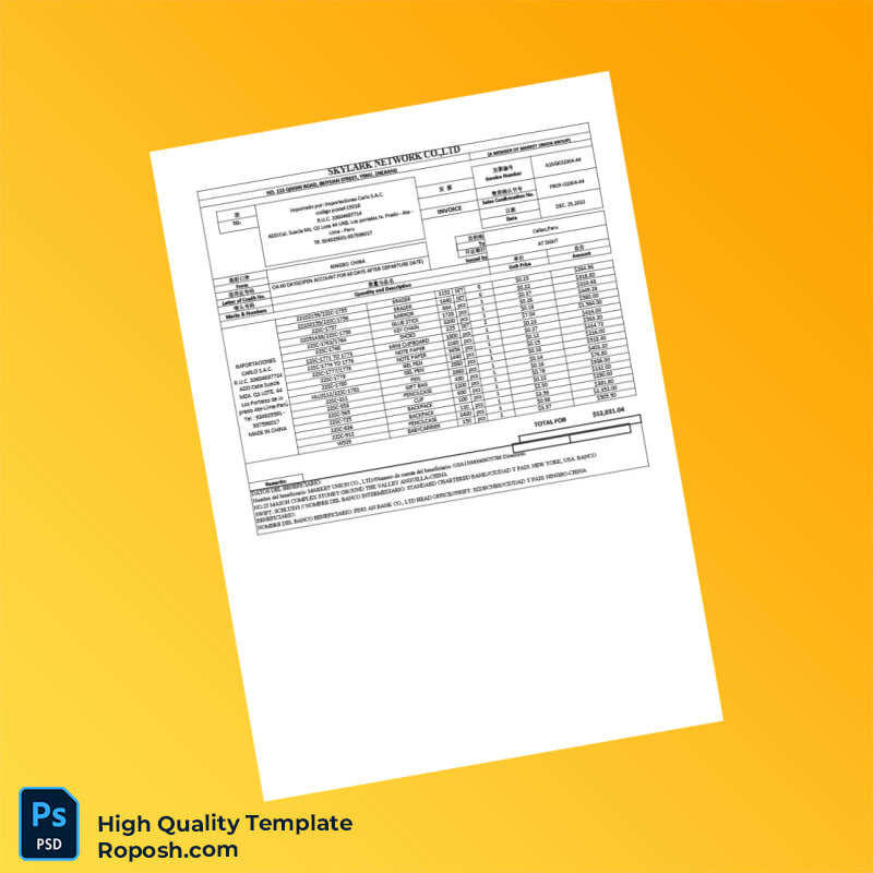 China Skylark Network Co Ltd Invoice Template: Effortless Editing in Word and PDF