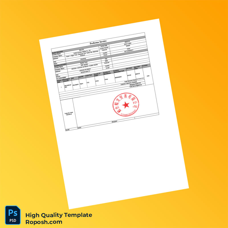 China Yantai Kunlong Trading Co Ltd Proforma Invoice Template – Editable and Professional