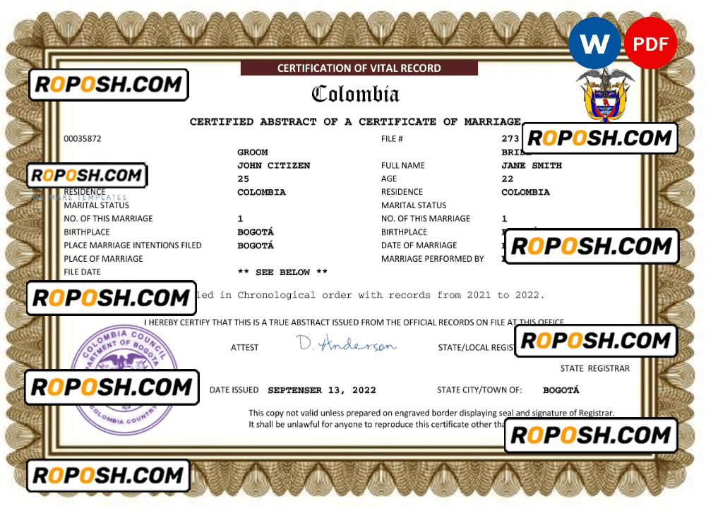 – Join our growing list of satisfied customers today by getting your hands on our blank Colombia marriage paper certificates.