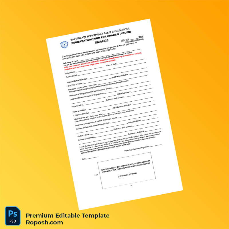 Empower your workflow with the AKUEB Registration Form for Grade 6 Outsiders 2025-2026 Word & PDF Template. Whether you represent an institution or are an individual applicant, benefit from its comprehensive customization capabilities to ensure your registration documents are perfect every time. Don’t wait — optimize your registration experience with this easy-to-use, professionally crafted template now.