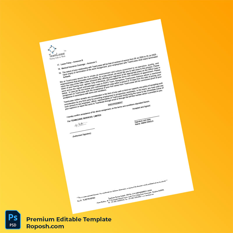 Be the first to review “Customizable Aman Singla Ol Employment Verification Letter Word & PDF Template 6 page”