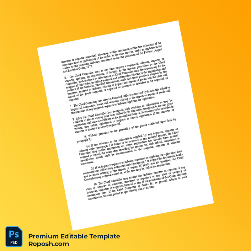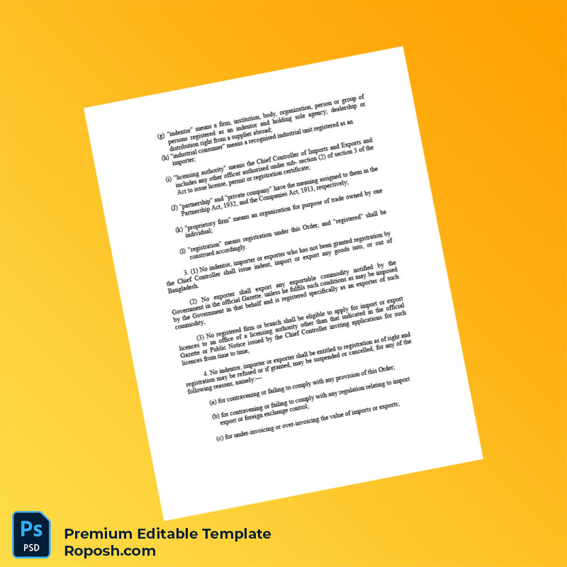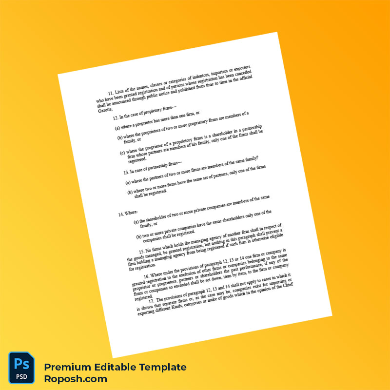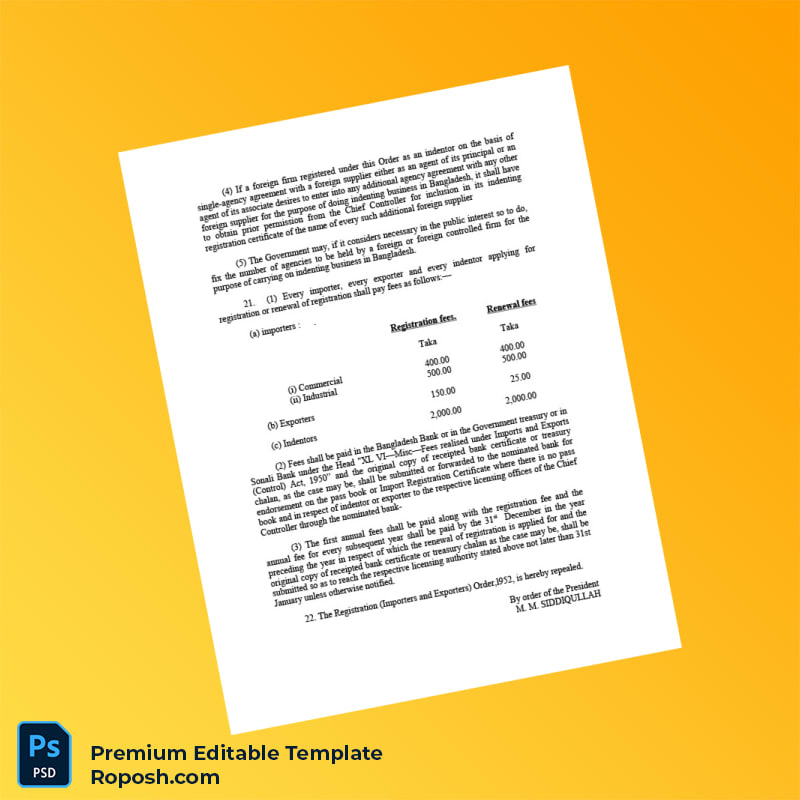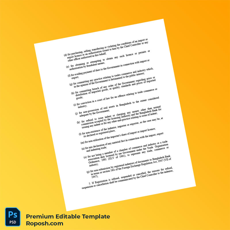 Customizable Bangladesh Chief Controller of Imports and Exports Registration Certificate Editable Word & PDF Template 8 page