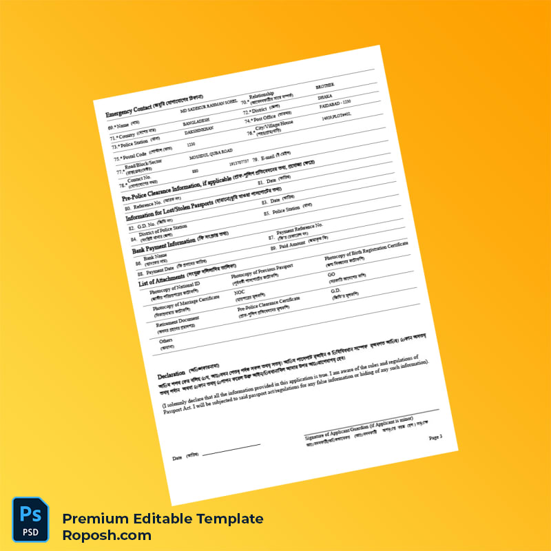 Managing the formalities of business documentation can often be time-consuming and complex. The Bangladesh Department of Immigration and Passport Registration Certificate Word & PDF Template is designed to simplify this essential process for entrepreneurs and professionals alike. This fully editable and customizable certificate template empowers users to efficiently create an official registration document that meets governmental standards.
