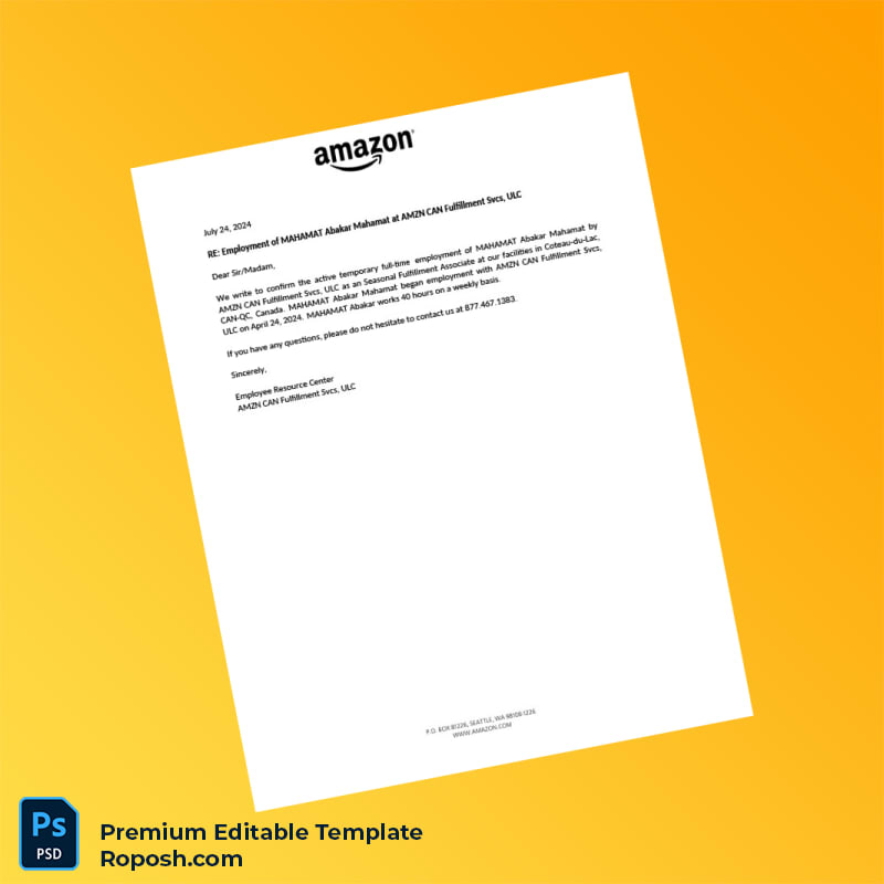 Struggling to provide a professional and accurate confirmation of your employment status? The Canada AMZN CAN Fulfillment Svcs ULC Employment Verification Letter Word & PDF Template offers an easy, fully customizable resource designed to simplify this important task. Whether you need to replace a lost document, update expired verification, or quickly issue a job confirmation, this template ensures a seamless experience.