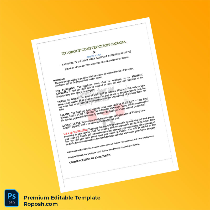 Ensure your employment verification process is both efficient and professional. Download the Canada ITC-Group Construction Employment Verification Letter Word & PDF Template now and experience the ease of customizable and editable document management designed to meet your specific employment verification needs.