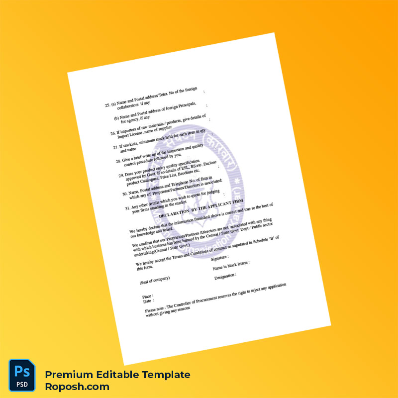 Take control of your vendor registration process now with this fully customizable and professionally designed certificate template. Simplify updates, enhance document clarity, and ensure compliance—all within a single, easy-to-edit file. Download the Country Controller of Procurement Vendor Registration Form Word & PDF Template and experience efficiency like never before.