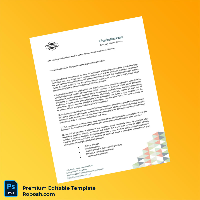 Customizable Hong Kong Chandni Restaurant Employment Verification Letter Word & PDF Template 3 page