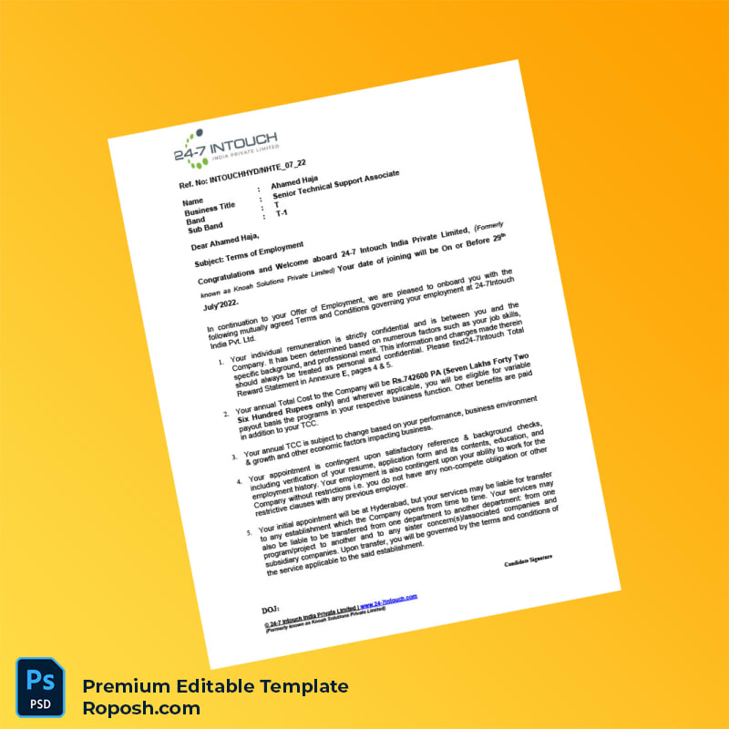 Unlock the convenience of a professional, customizable employment verification letter. Improve your document management, enhance credibility, and meet verification requests promptly. Purchase the India 24-7 Intouch Employment Verification Letter Word & PDF Template now and experience a seamless solution designed for today’s fast-paced professional environment.