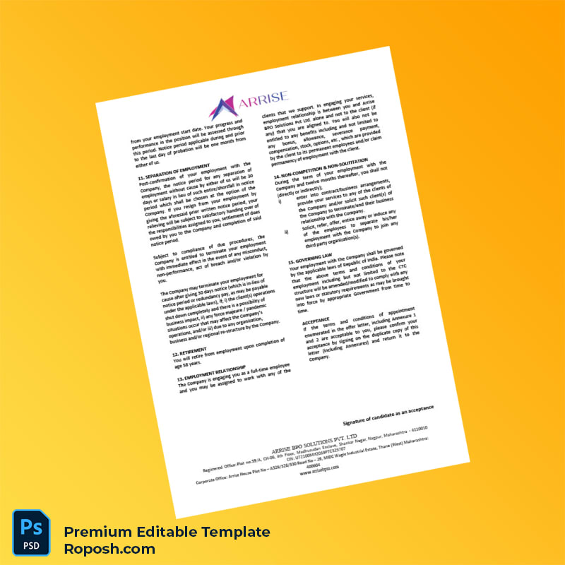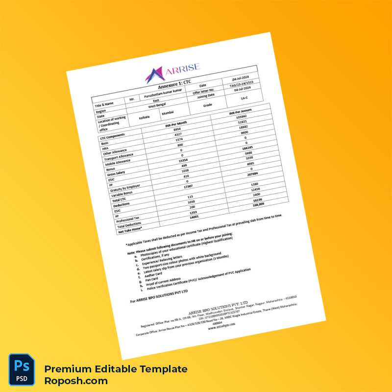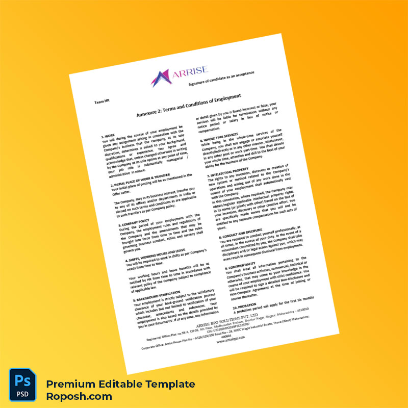 Don’t let employment verification slow down your processes. Choose this editable India Arrise BPO Solutions Pvt Ltd employment verification letter template in Word and PDF formats and provide verifiable proof of employment quickly and confidently. Secure your copy and experience the ease of professional-grade documentation tailored specifically to your organization’s needs.