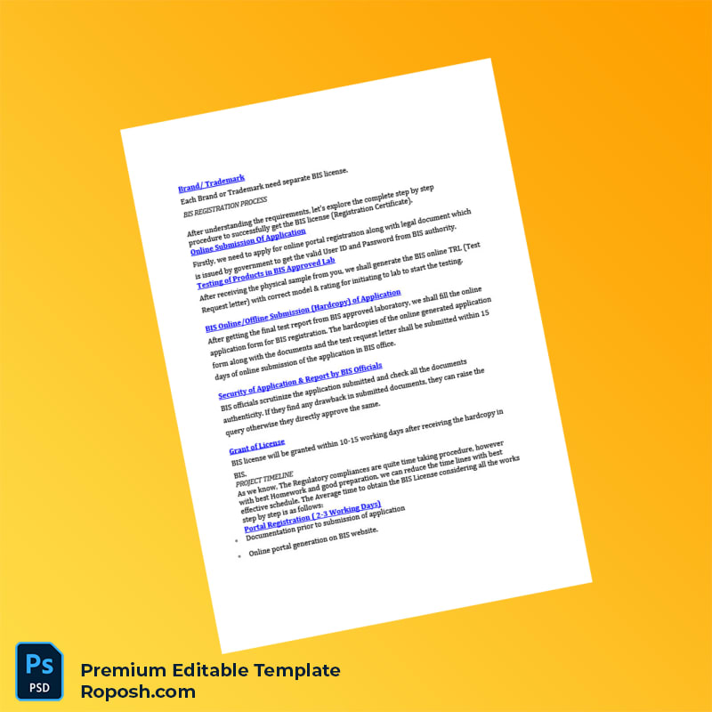 Quickly and efficiently replace or create your official BIS registration certificate with this fully editable and professional-quality template. Designed specifically for businesses needing an authentic and customizable registration certificate, this template empowers you to maintain compliance and present your credentials with confidence.