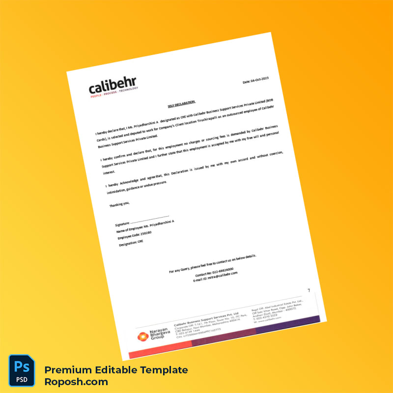 The India Calibehr Business Support Services Pvt Ltd Employment Verification Letter Word & PDF Template offers an efficient and polished way to confirm employment status quickly and reliably. Whether you are an HR professional, a small business owner, or an administrative specialist, this document template is designed to simplify the verification process ensuring accuracy and compliance.