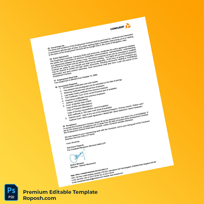 Introducing the India Conduent Business Services India LLP Employment Verification Letter Word & PDF Template