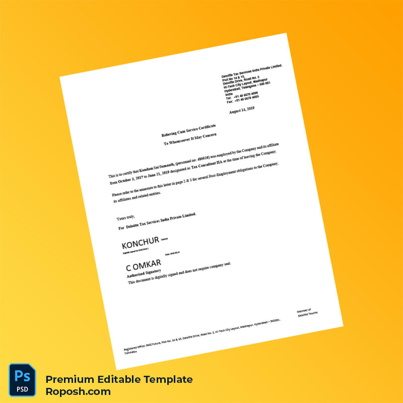 Customizable India Deloitte Employment Verification Letter Word & PDF Template 3 page