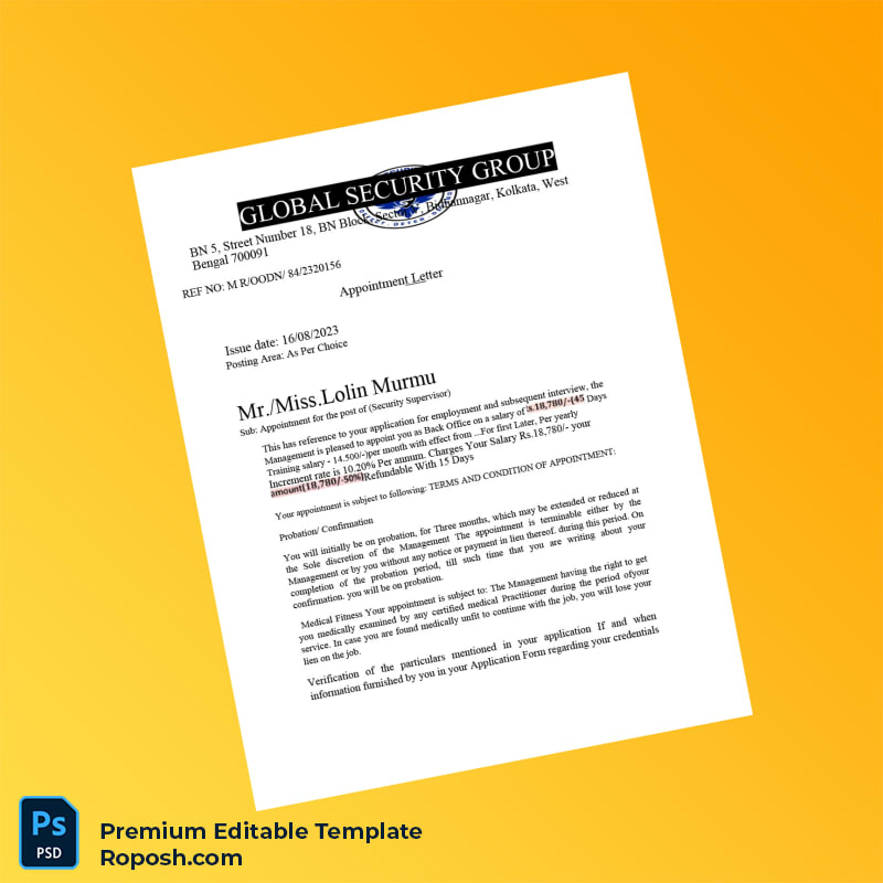 Be the first to review “Customizable India Global Security Group Employment Verification Letter Word & PDF Template 5 page”