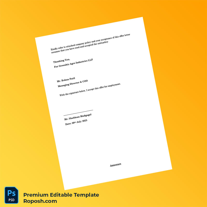 Customizable India Greenbiz Agro Industries LLP Offer Letter Word & PDF Template 4 page