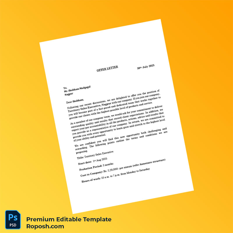 Enjoy a clean, professional design crafted for clarity and legal compliance, ensuring your offer letter reflects credibility and thoroughness, imperative for employee confidence and corporate standards.