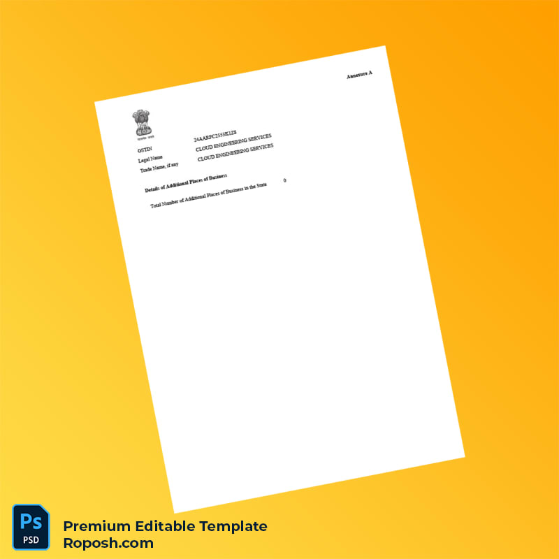 Don’t let missing or outdated certificates slow down your professional operations. Harness the power of this editable India Gujarat GST registration certificate template and experience efficient document management. Secure your copy today and enhance your business’s compliance with a professional and customizable certificate that caters specifically to your needs.