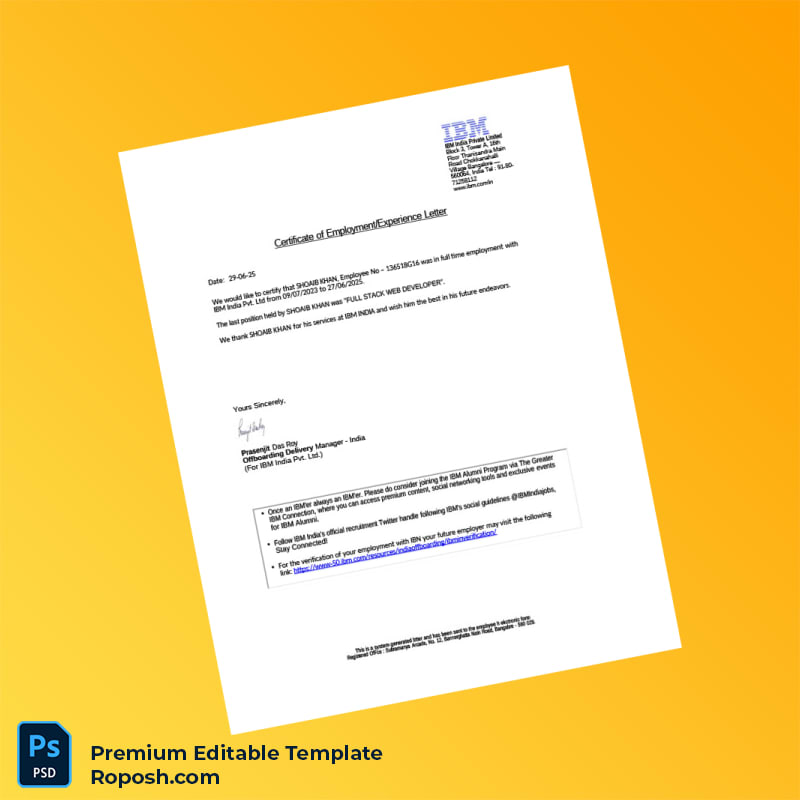 Don’t let missing or outdated employment proof hold back your professional progress. This fully customizable India IBM Employment Verification Letter Word & PDF Template empowers you to take control over your employment verification documents with ease and professionalism. Download now and experience the convenience of editing your employment confirmation in minutes!