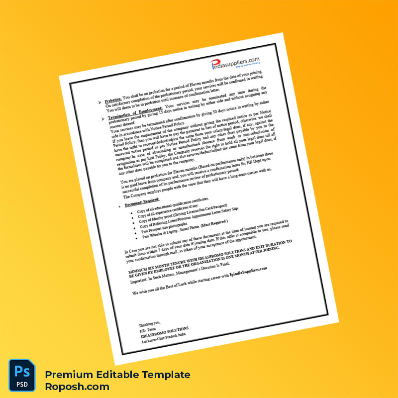 In today’s fast-paced professional world, securing an official employment verification can be a time-consuming and stressful task. The India IDEASPROMO SOLUTIONS Employment Verification Letter Word & PDF Template offers a seamless solution for HR managers, recruiters, and employees needing a formal confirmation of employment quickly and efficiently.