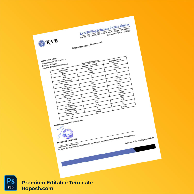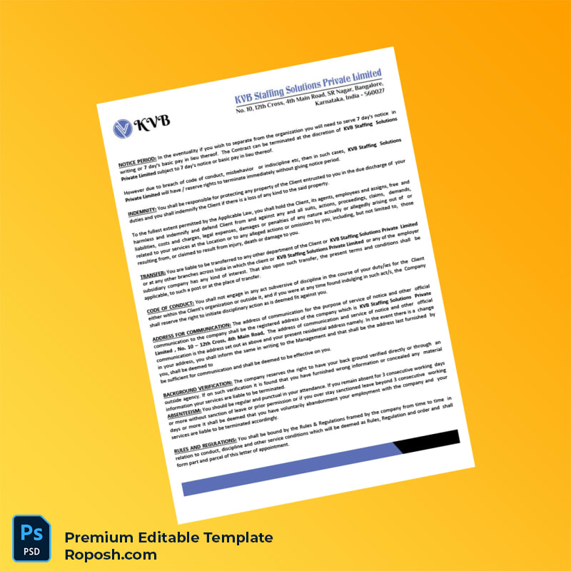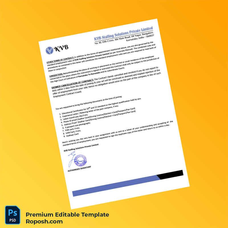 The India KVB Staffing Solutions Private Limited Employment Verification Letter Word & PDF Template is an expertly designed document that simplifies the way professionals confirm employment details. Ideal for HR managers, staffing agencies, and professionals who require prompt, accurate documentation, this template is a must-have resource for seamless employment verification.