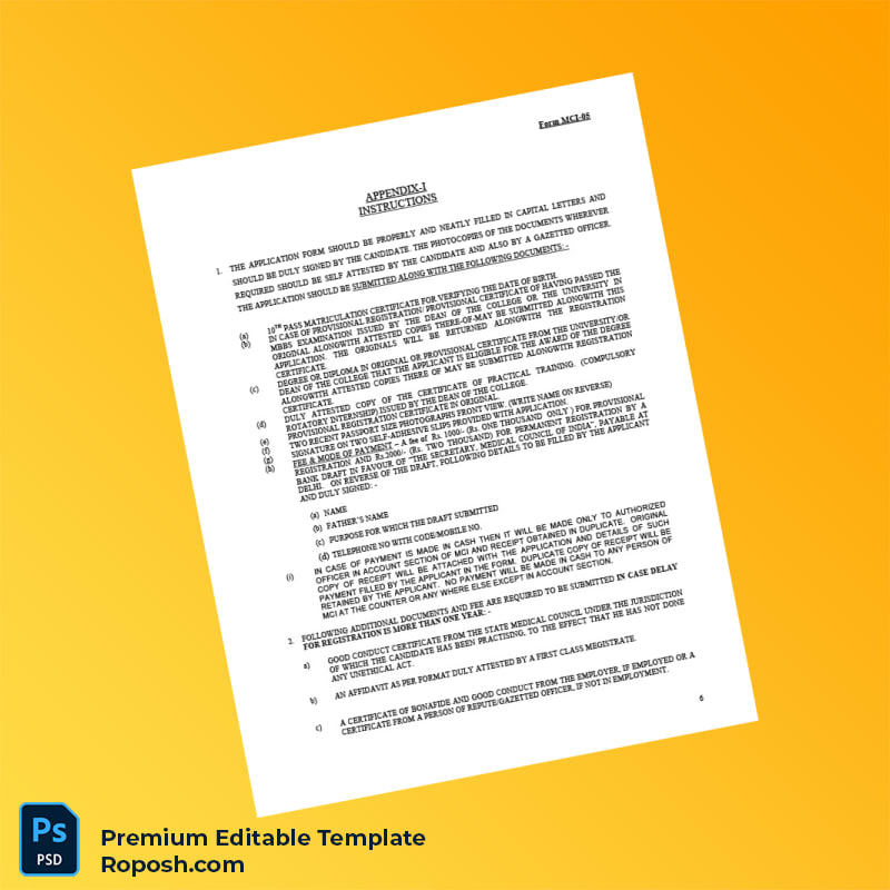 Be the first to review “Customizable India Medical Council Provisional Permanent Registration Certificate Editable Word & PDF Template 8 page”