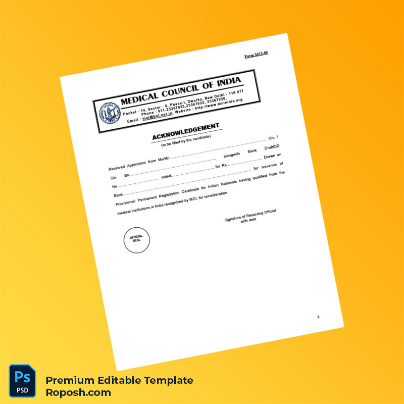 Customizable India Medical Council Provisional Permanent Registration Certificate Word & PDF Template. Fully editable to update all details with ease.