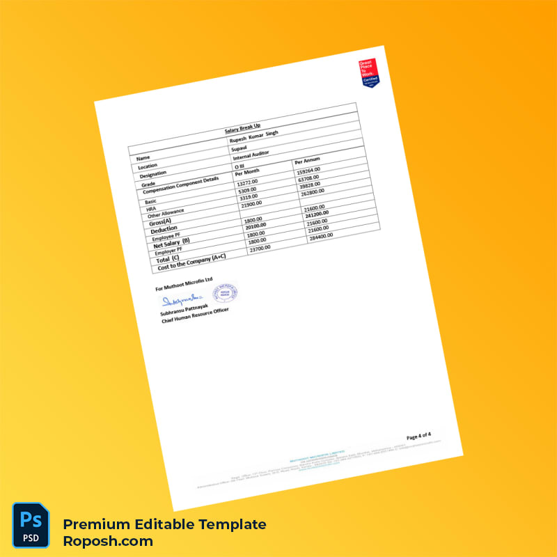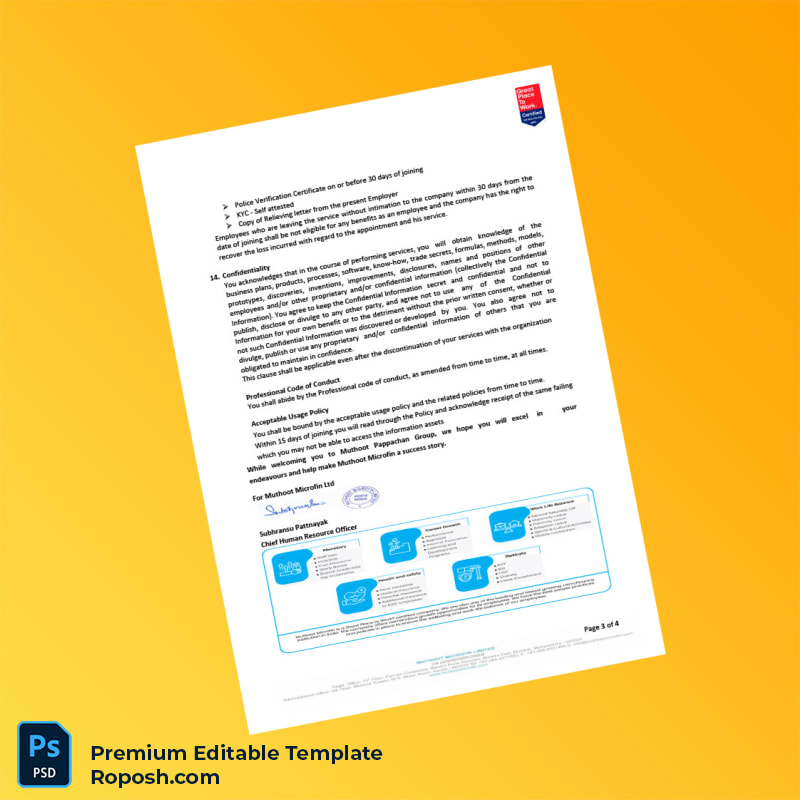 Don’t let employment verification delays impact your career or financial endeavors. Download the India Muthoot Microfin Employment Verification Letter Word & PDF Template now to create fully editable and highly professional proof of employment certificates instantly. Simplify your documentation process and present verifiable employment confirmation with confidence.